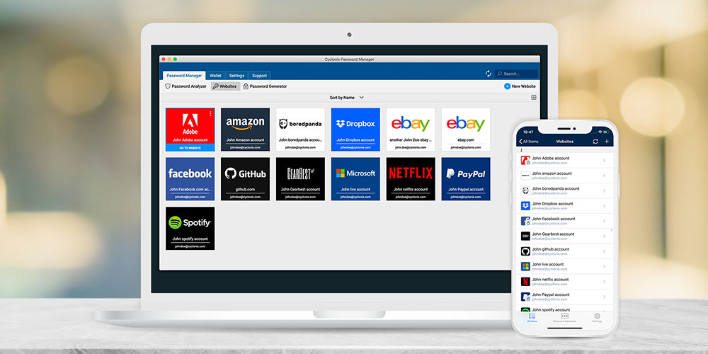 Never forget another password! Manage your accounts in Cyclonis instead, saving passwords to a secure cloud vault that syncs with all your devices.