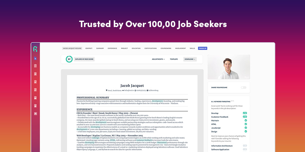 Overhaul your CV with Rezi, an AI-powered resume builder. Make your CV ATS-friendly, and build cover letters tailored to specific position outlines.