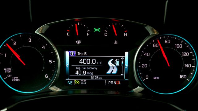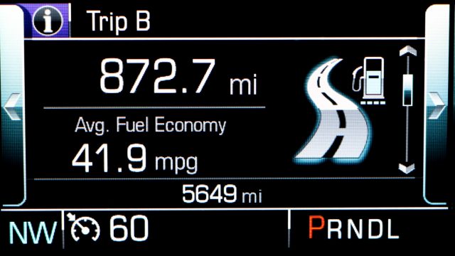 The EPA rates the Equinox diesel at 28 mpg city, 38 mpg highway, 32 mpg combined; the front-drive diesel is 28-39/32. In comparison, the AWD 1.5T gas-engine Equinox is rated at 24/30/26. The highway mpg is the best of any compact SUV, and city mileage is topped only by a pair of hybrids, the Toyota RAV4 and Nissan Rogue. With the all-wheel-drive Equinox diesel, I got 46 mpg in highway driving going a bit over the mostly 65 and 70 mph interstates; at a steady 60 mph, I got 47 mpg. With a 15-gallon fuel tank, I could drive about 600 miles. For every three fill-ups in most compact SUVs, you’ll only need to make two. During my week with the Equinox diesel, I filled up or topped off five times.