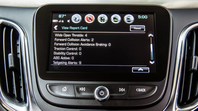 On the Equinox, the Teen Driver app rats out your kid if the car goes too fast, engages traction control, or uses wide open throttle. Parents can set a cap on audio volume, and the audio is muted until the front seat belts are fastened. The car also had GM Marketplace, an evolving place to run phone apps for Shell and ExxonMobil; fast food restaurants and mainstream restaurants such as Dunkin’, Starbucks, Waffle House, TGI Friday, and the like; also hotels. Because of fears of driver distraction, some apps are limited; with Dunkin’, for example, you can order only the last three things you bought. Marketplace usage doesn’t count against the car’s data minutes if you don’t have the unlimited plan.