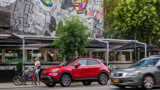 At 168 inches, the 500X works well in cities where graffiti is bigger than many parking spaces. (Okay, there’s parking outside this NYC diner because it’s a no-parking zone.)