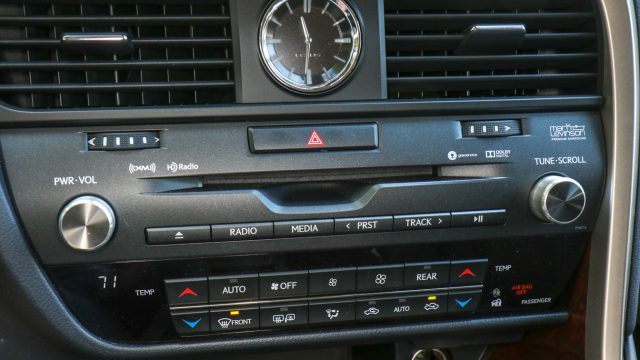 There is currently no Android Auto or Apple CarPlay on the RX, but it’s now on other Lexus/Toyota vehicles. In addition to four USB jacks, there are three 12-volt outlets and, for fans of nostalgia, an in-dash CD player.