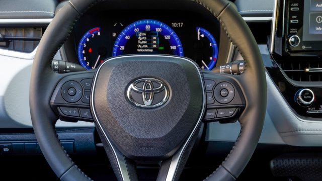- Full-range adaptive cruise control (“dynamic radar cruise control” in Toyota terminology). Manual-transmission Corollas get a simpler system that doesn’t go down to zero.