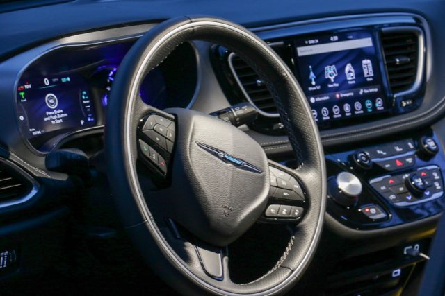 The Pacifica has upscale finishes on most trim lines. The UConnect 4 center stack display is 8.4 inches.