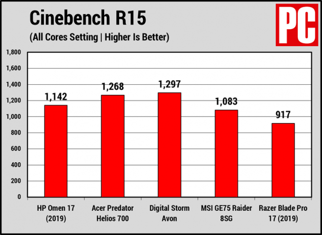PCMag tested the Omen 17 against several other similarly priced systems with various different hardware configurations. This is helpful as it gives you a solid idea of what you can get for your buck. Starting things off with a few processor tests, the HP Omen 17 doesn’t really stand out in the crowd.