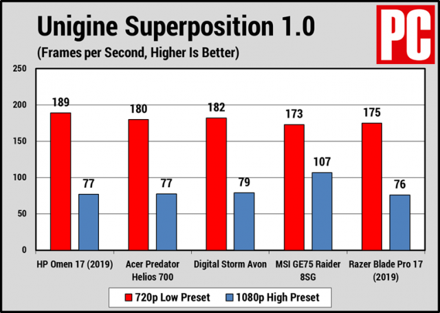 In graphics tests, the Omen 17 performs better and manages to pull ahead of the competition in some cases. The results are mixed, however, and the Omen doesn’t really pull a definitive win.
