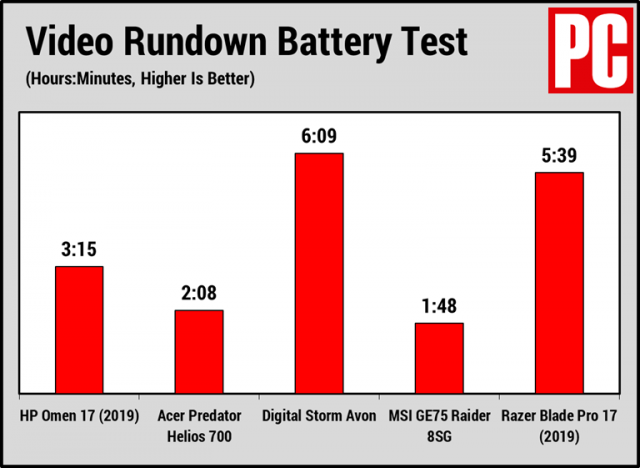 PCMag also tested the Omen 17’s battery and cooling. The battery managed to last for just over three hours in a video playback test, which actually isn’t terrible for a gaming system. It pulls far ahead of the competing Acer and MSI products but doesn’t come close to matching the Digital Storm Avon or Razer Blade Pro 17.