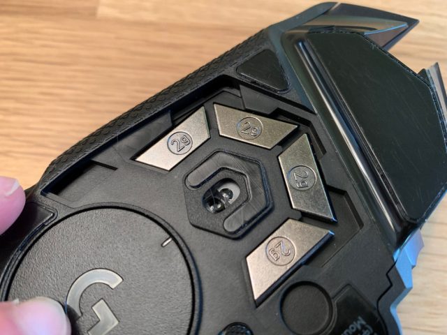 The right-hand oriented mouse weighs in at 4 ounces (114g), but this can be increased to 4.6 ounces (130g) if like me you prefer a mouse with a bit more heft to it. The mouse also has two RGB LED light zones that can be adjusted to a number of different light patterns to suit your taste. Logitech also equipped this mouse with a total of 11 buttons, all of which are fully programmable including the primary mouse buttons.