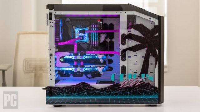Over the years America has seen its fair share of memorable decades in fashion. We’ve had the roaring twenties, the golden era following the end of WWII, disco, and so on. A lot has changed since then, but in nostalgic reverence for the 1980s and Miami Vice, Origin has designed its customized gaming desktop with lots of classic neon flair.