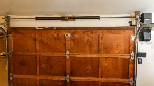 As for the openers, the myQ technology was the bang-for-the-buck and ease-of-use winner. Because the existing openers were 20-plus years old, I opted for new Liftmaster openers, $500 apiece, with jackshaft drive (attaches directly to the torsion bar roller), integrated battery backup, keypad remote, and one each wired and wireless in-the-garage remote controls. With this opener, there’s no center drive rail, and later I can install the door rollers in a custom metal track that follows the ceiling. That would allow the future shop lift, and in the meantime, the garage looks a little more open. The follow-the-ceiling roller tracks can be added later.