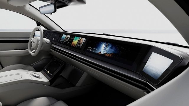 Sony says it builds a set of speakers into the headrest of each seating position (four in this vehicle). Sony calls it 360 Reality Audio that provides a “deep and immersive experience … to encapsulate passengers in sound.” It also means the driver could get navigation or safety prompts that only the driver hears.