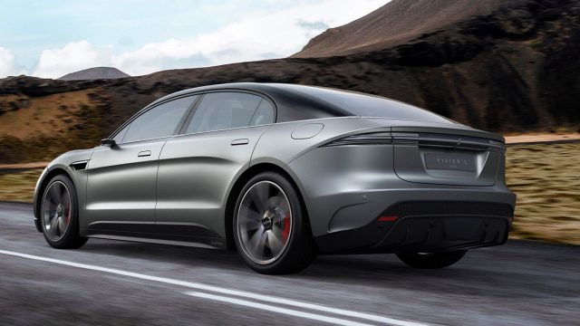 The concept car, which is roadworthy, uses the now-common skateboard concept with the heavy batteries as a slice at the bottom of the vehicle, improving stability. The car has 33 sensors total embedded in the car, including CMOS and Time-of-Flight sensors, the latter to detect and recognize passengers in the cabin and their location relative to the nearest Sony screen. Other sensors track vehicles and pedestrians outside the car.