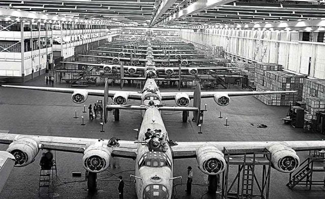 “Blacksmiths,” not watchmakers, and they did just: B-24 production at Ford Willow Run (MI) plant in World War II nearly equaled three aircraft companies building the Liberators. (Photo via Wikipedia)