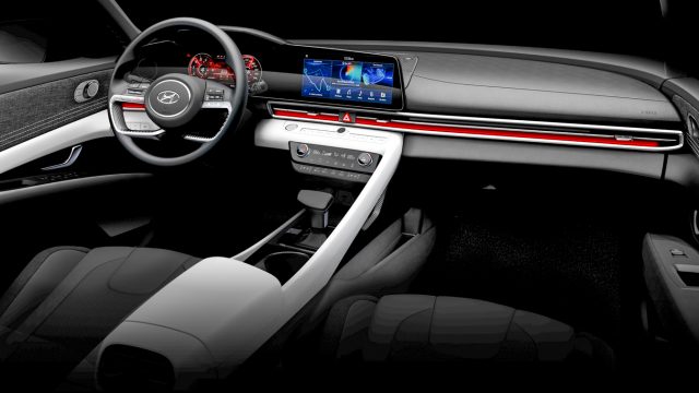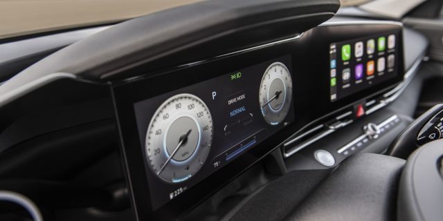 As with the new midsize sedan last fall, Hyundai imbued the Elantra with class-above features, a slew of technologies standard or optional including semi-autonomous driving and a pair of 10.25-inch color displays in the dashboard.