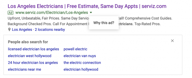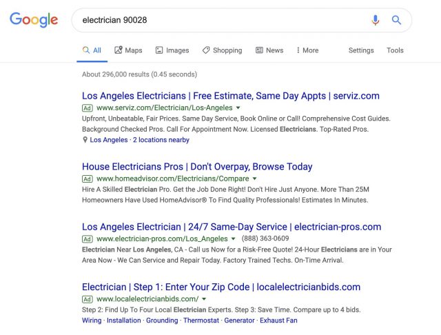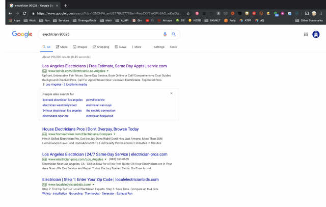 For this to work, Google and the Government would have to work together. Additionally, Google could provide contextual tools for reporting fraud. For example, take this basic search for an electrician: