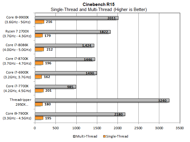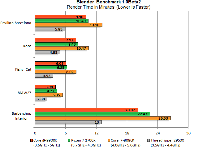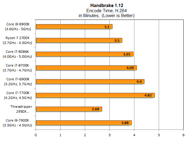 The results speak for themselves. AVX-512 support in the Core i9-7900X might make it a must-have if you need that compatibility and the Core i9-9900K has slightly lower motherboard costs, but neither chip holds a candle in multi-threading to Threadripper in anything but H.265 encoding, where our results do show the Core i9-9900K still holding an edge over Threadripper, mostly because H.265 encoding doesn’t appear to scale all that well above eight cores. In every test that does scale well above eight cores, including some tests that nominally favor Intel, Threadripper wins.