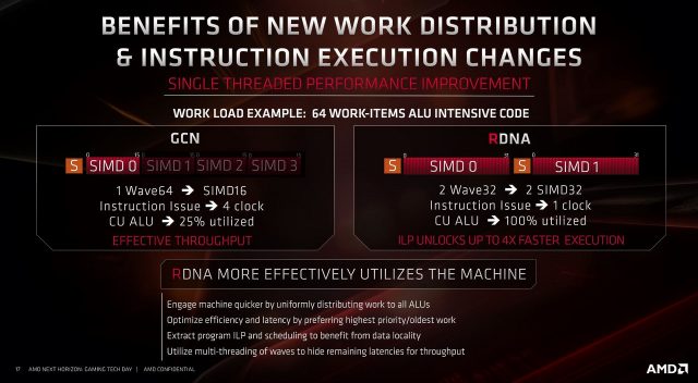 The overall performance per clock has improved by 1.25x, according to AMD, while the number of gates per clock has dropped. Power efficiency has improved substantially, with claims of a 1.5x improvement over GCN.
