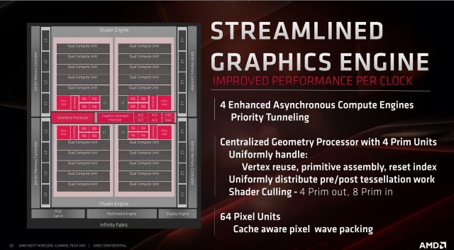 Navi activates Vega’s previously implemented-but-unused support for primitive shaders, so that feature is now functional on AMD’s latest GPUs. Potential IPC is also much higher, up to 1, as opposed to GCN’s limit of 0.25.