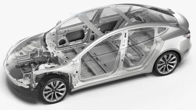 Tesla uses several grades of steel and aluminum for strength and passable weight.