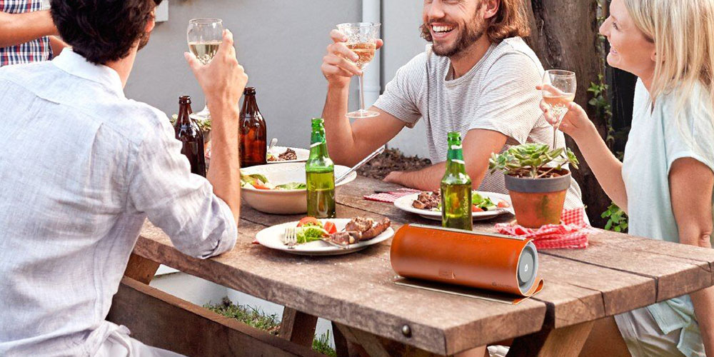 This Bluetooth-enabled speaker features 3D sound and passive bass radiators—enough to easily fuel any party.